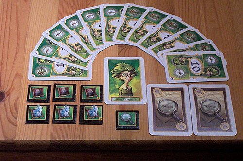 Crystal ball 水晶球:標到房子者在打開問號卡之前,可以猜測這房子到底有幾隻鬼,猜中可以得到這張卡,最後計分+2。
